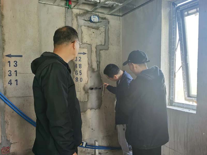 ▲ 檢查衛(wèi)浴預(yù)埋件安裝尺寸