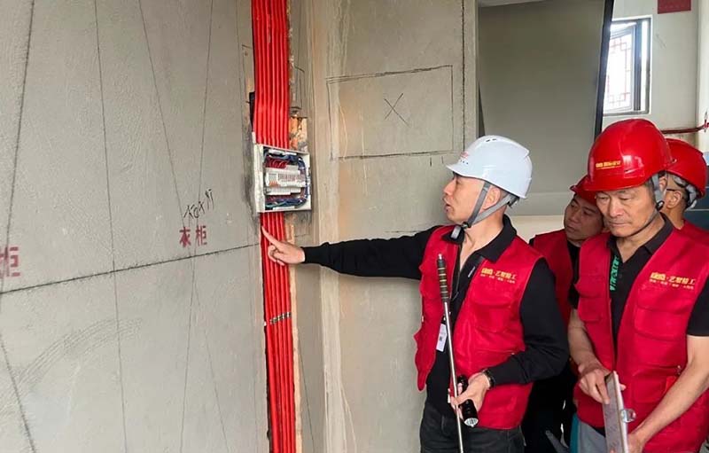 ▲ 檢查墻面踢腳線平整度