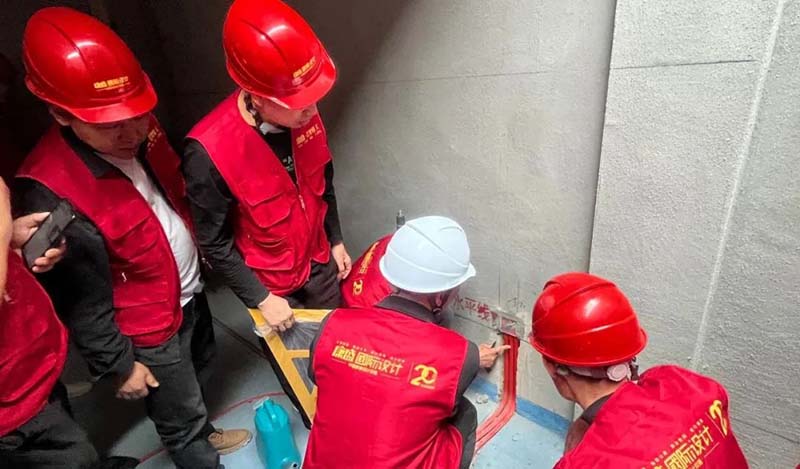 ▲ 講解下沉式衛(wèi)生間存水彎工藝要求