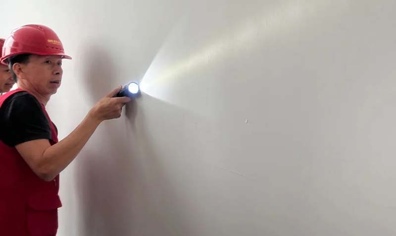 ▲ 檢查乳膠漆墻面平整度