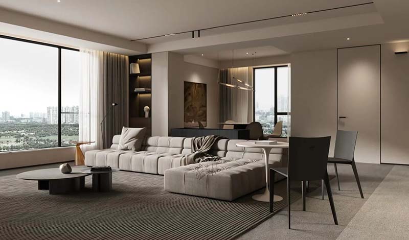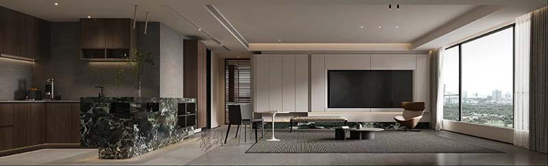 追求做減法的生活方式,呈現(xiàn)的空間是質(zhì)樸、自然的現(xiàn)代侘寂。