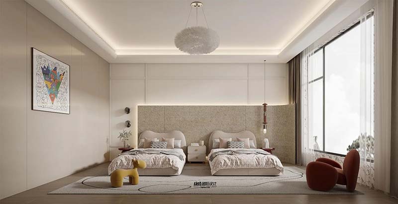 濃郁而淡雅的色調(diào)搭配干練利落的石膏線條,點(diǎn)綴上柔軟的沙發(fā)、精致的燈飾,讓空間在簡約的外表下不動聲色流露出溫柔。