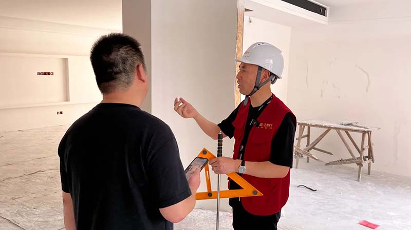 ▼ 本次巡檢,公司特邀嘉論網(wǎng)副總-大飛共同參與,現(xiàn)場(chǎng)直接對(duì)話工程總監(jiān)-張國(guó)付,全程直播檢查過(guò)程,深度講解大家最關(guān)心的裝修話題和施工細(xì)節(jié)。