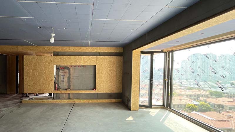 ▲ 檢查歐松板打底的平整度