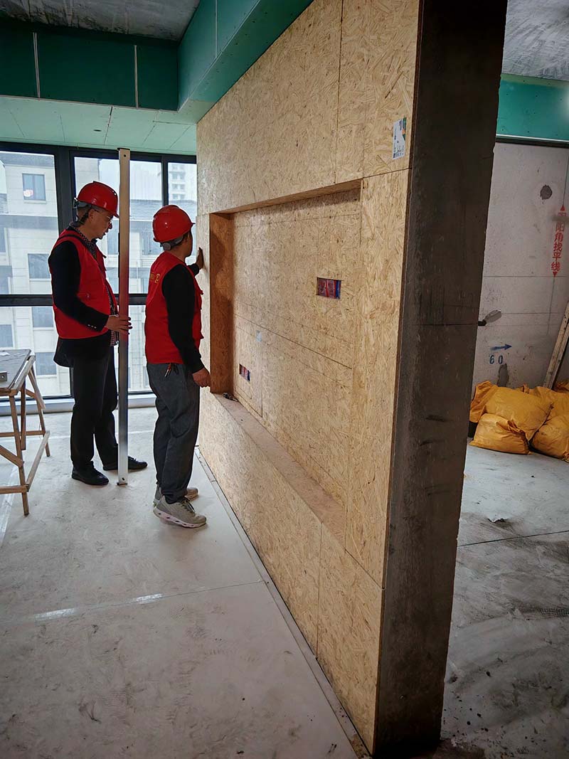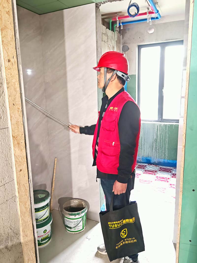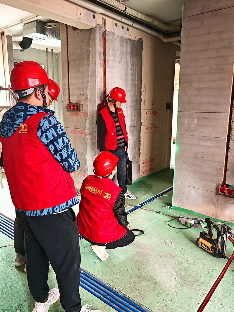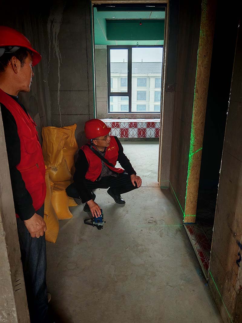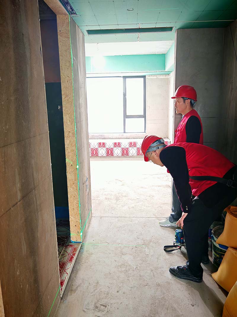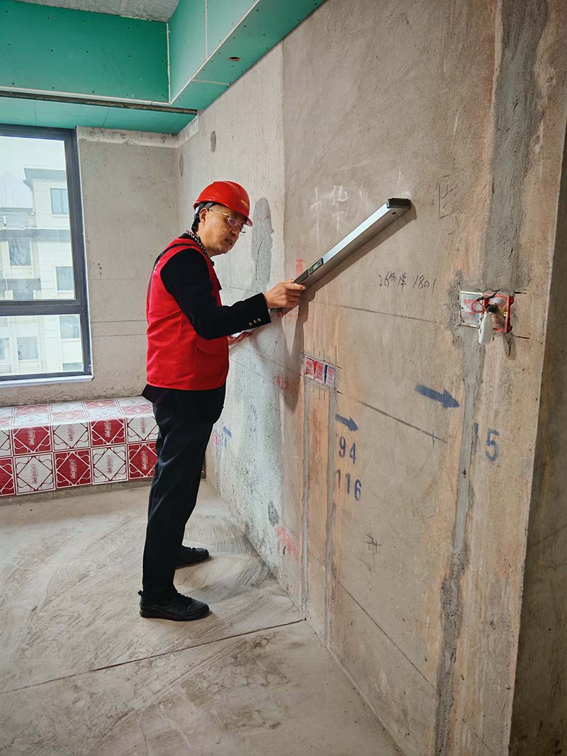 ▲檢查墻面垂直度