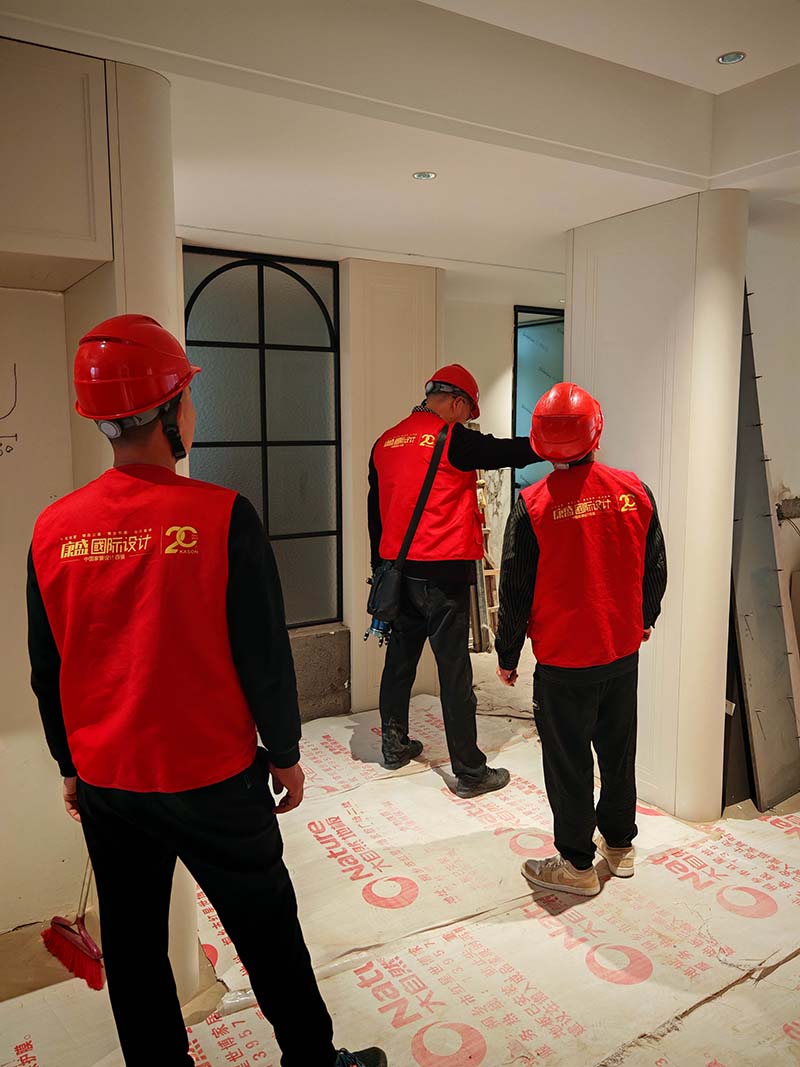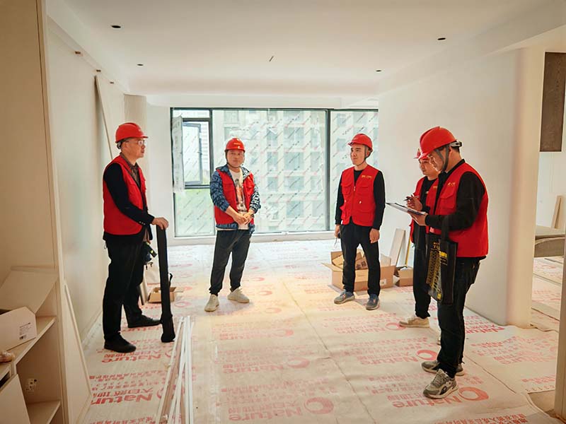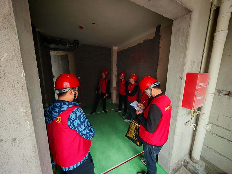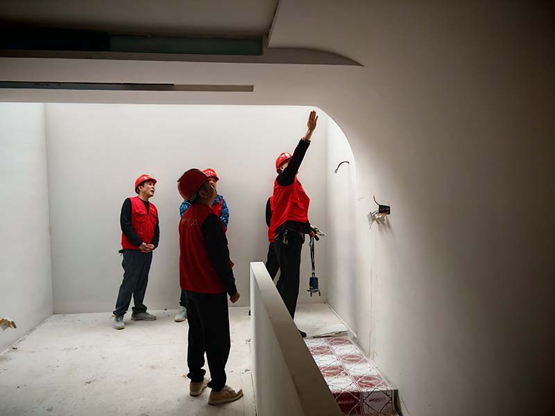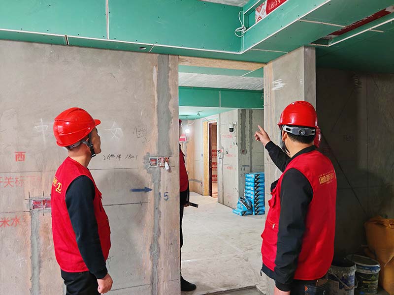 ▲檢查新老墻交界處平整度