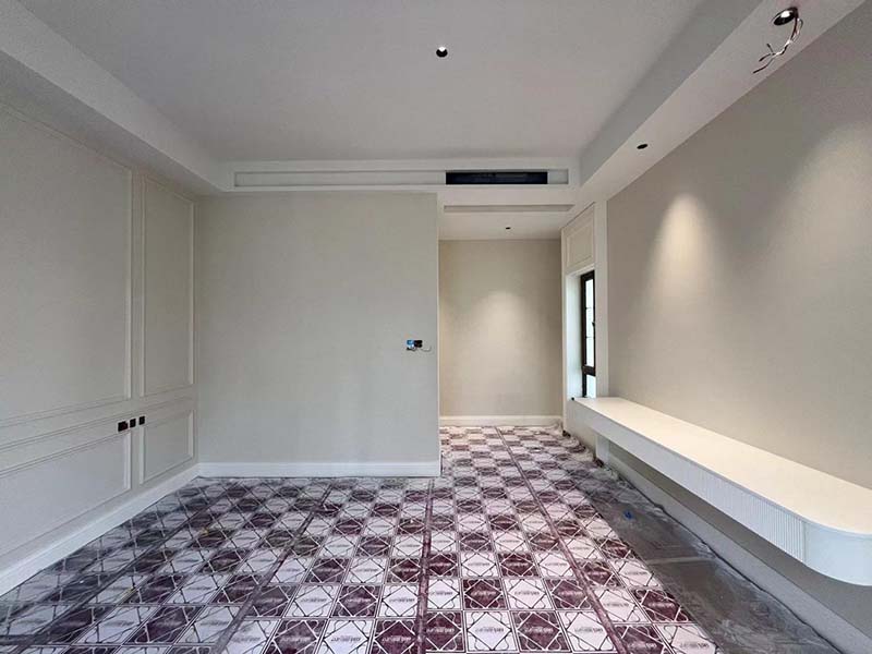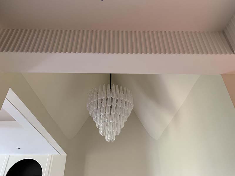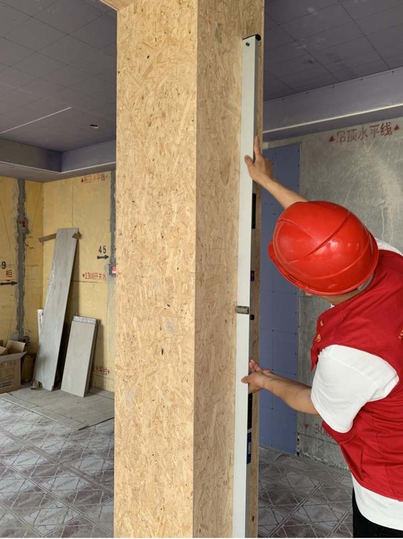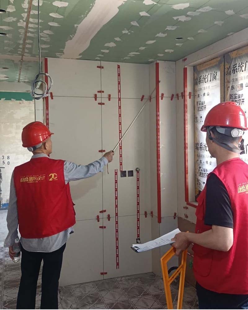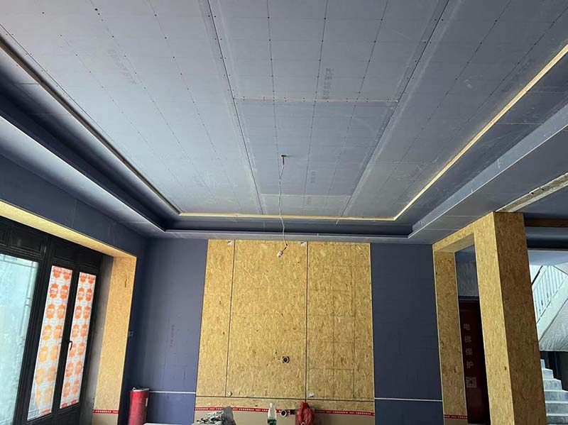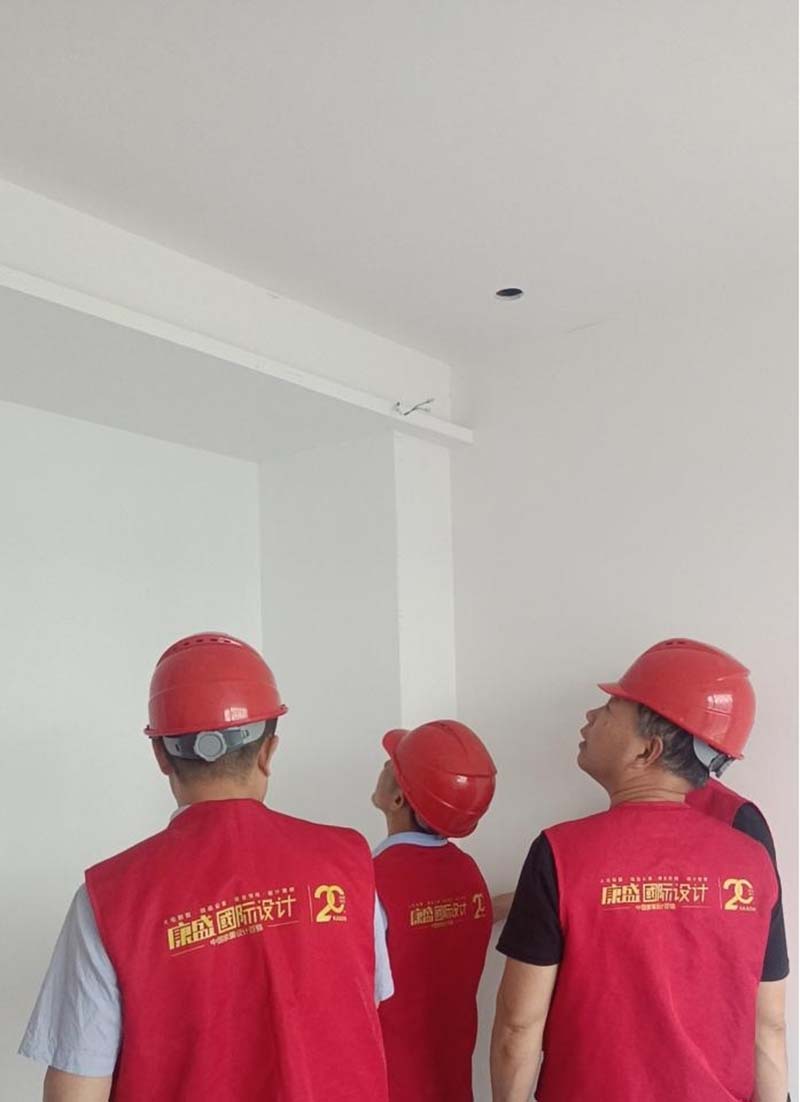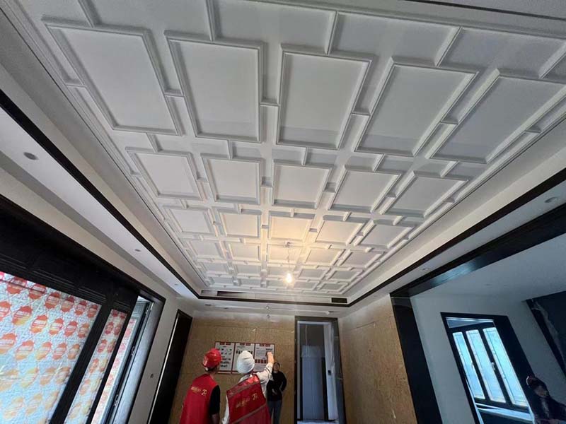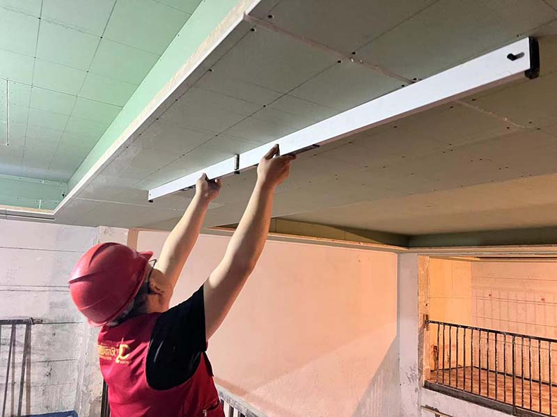 ▲檢查石膏板吊頂?shù)木€條釘眼處理