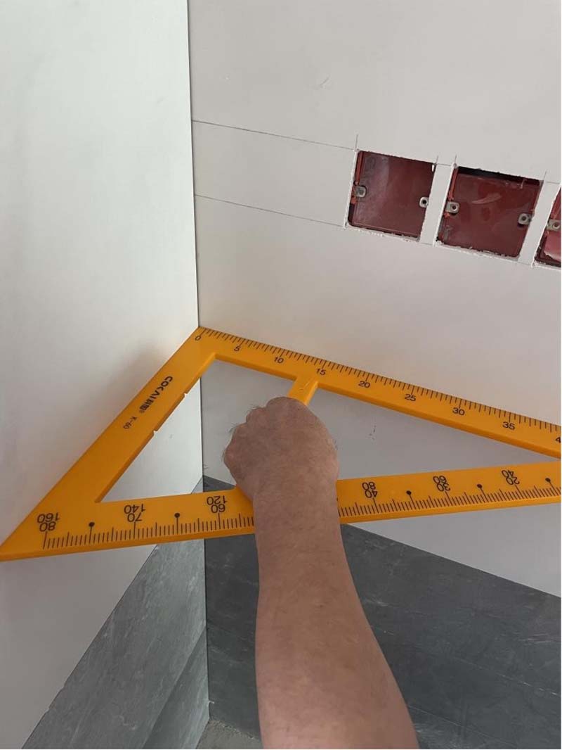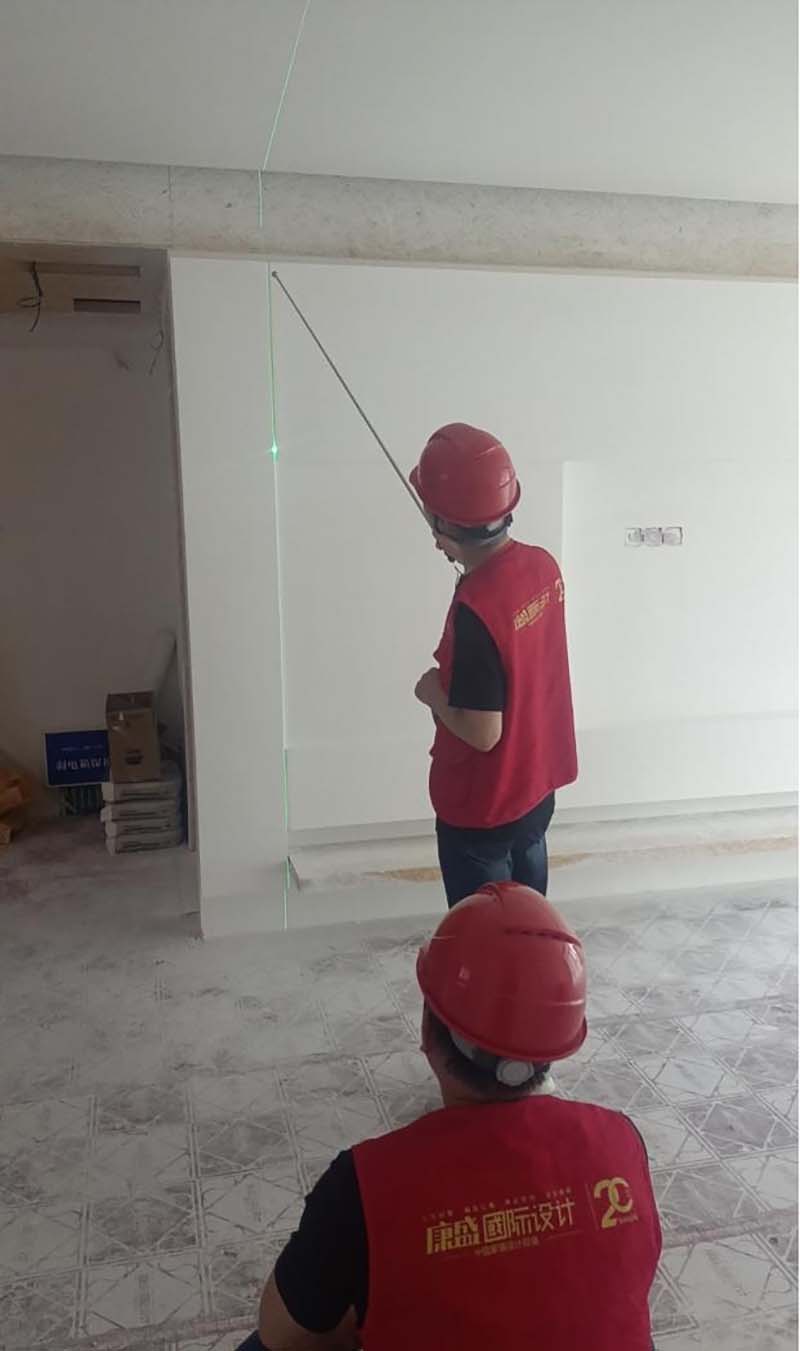 ▲檢測石膏板吊頂?shù)钠秸?/span>