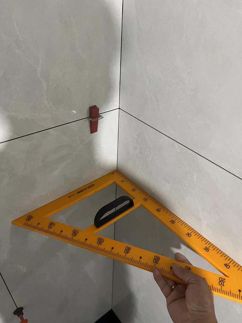 ▲檢查墻磚角度是否通方
