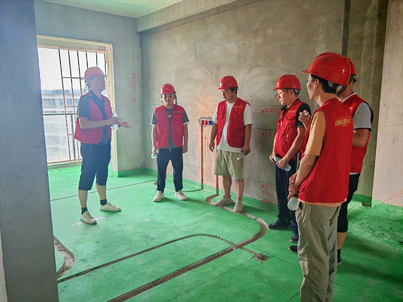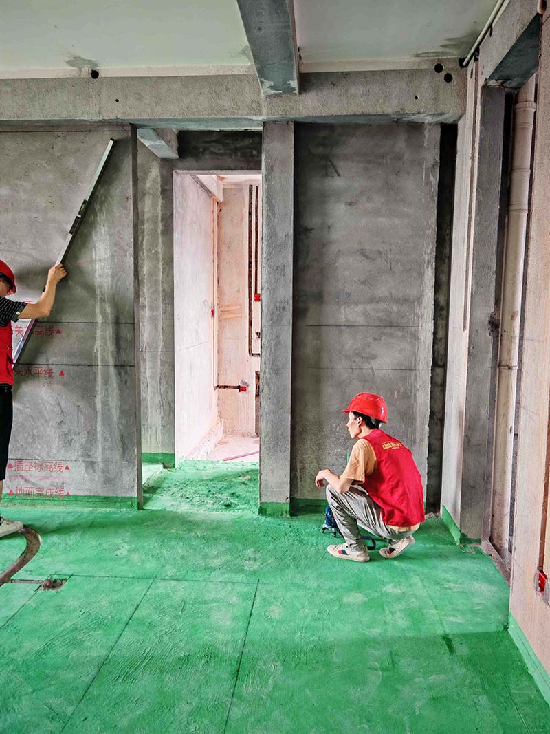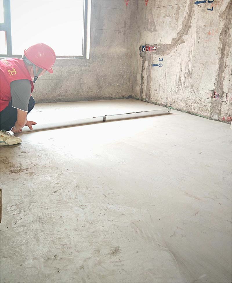 ▲檢查地暖找平面平整度