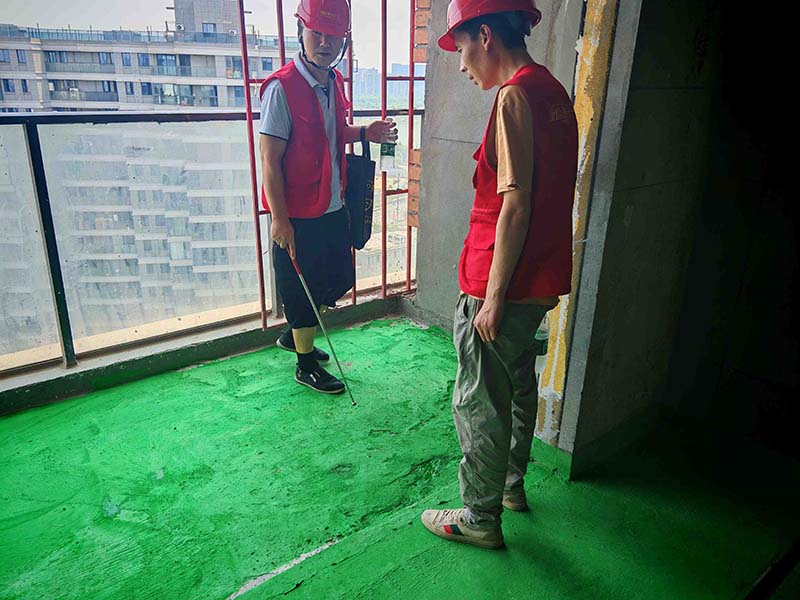 ▲檢查陽臺墻面原涂料層打磨