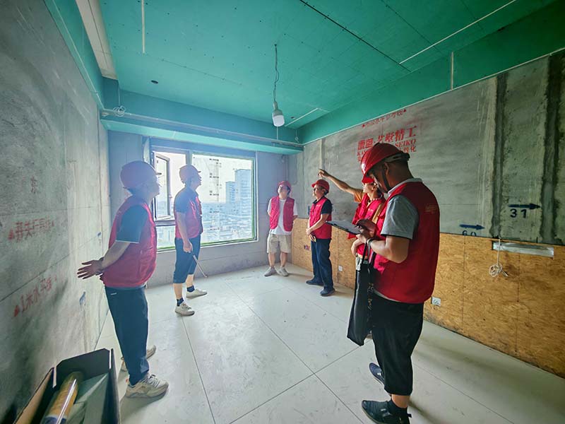▲檢查墻面平整度