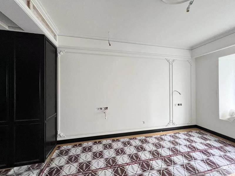 ▲檢查踢腳線的平整度