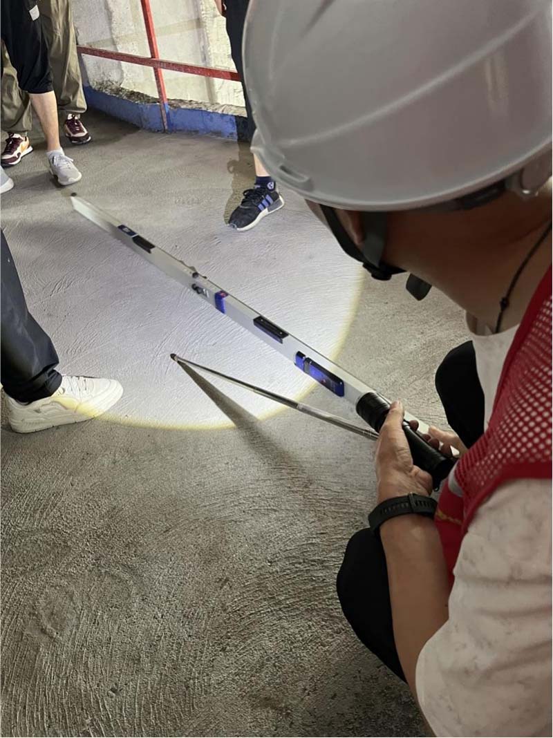 ▲檢查地暖地面的平整度