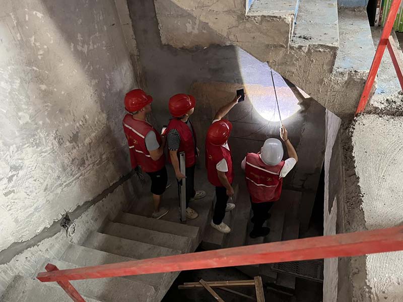 ▲檢查樓梯墻面修補(bǔ)