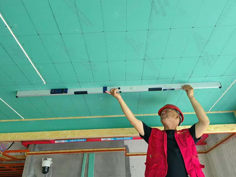 ▲檢查石膏板吊頂?shù)钠秸?