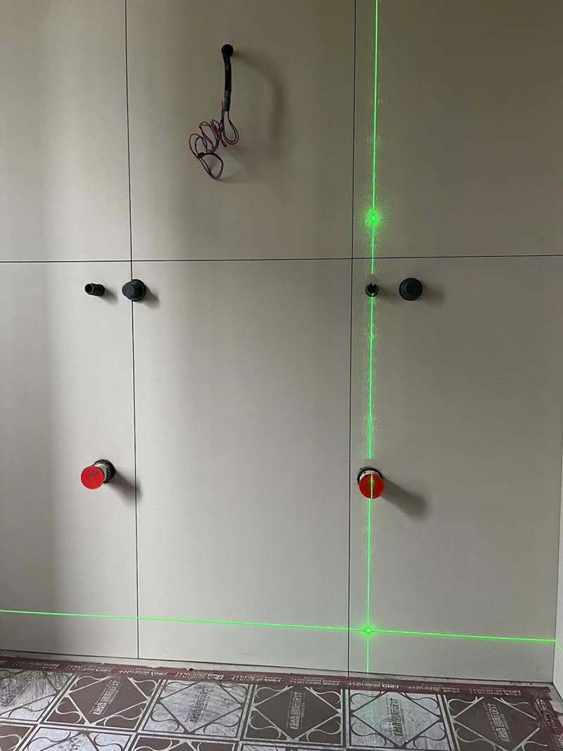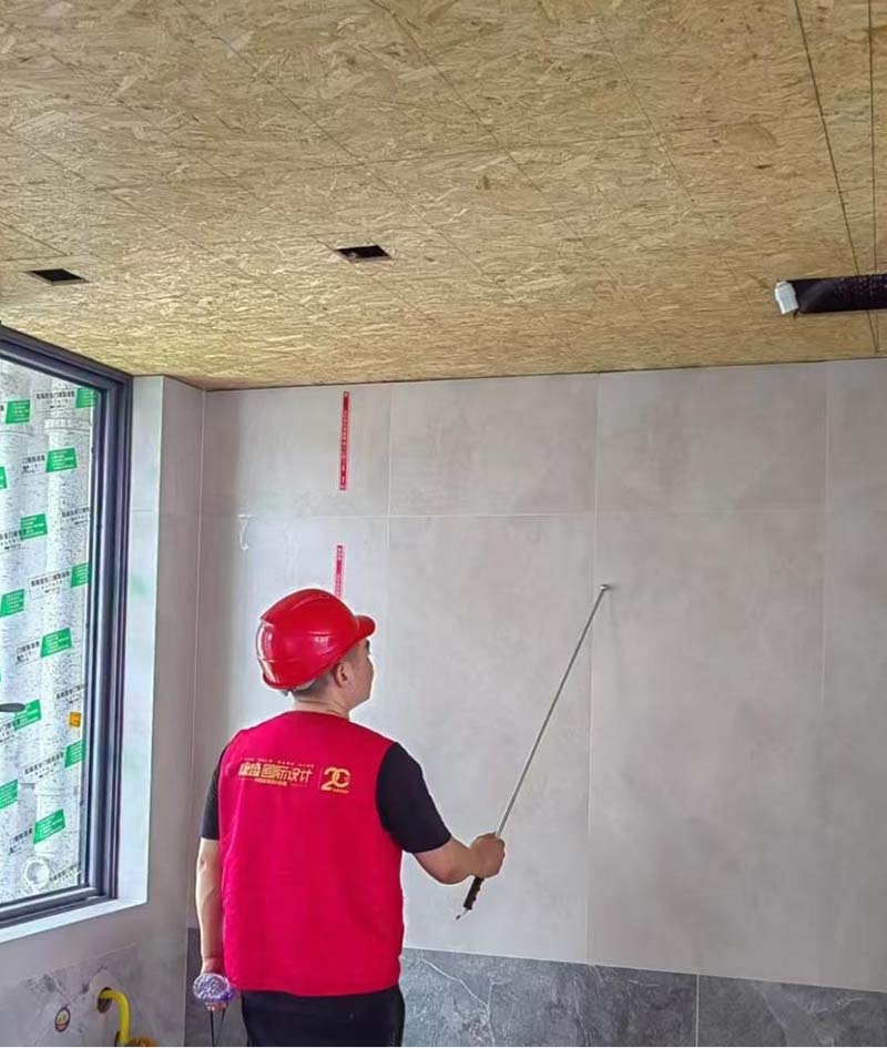 ▲檢查墻磚角度是否通方