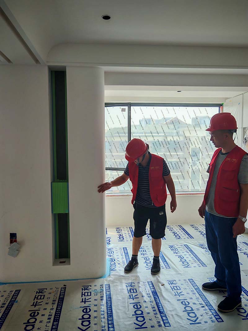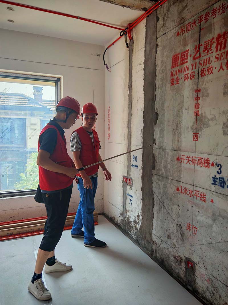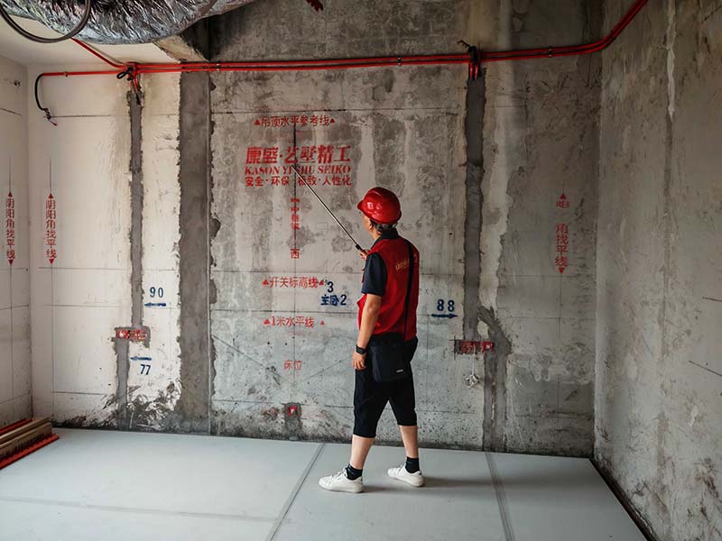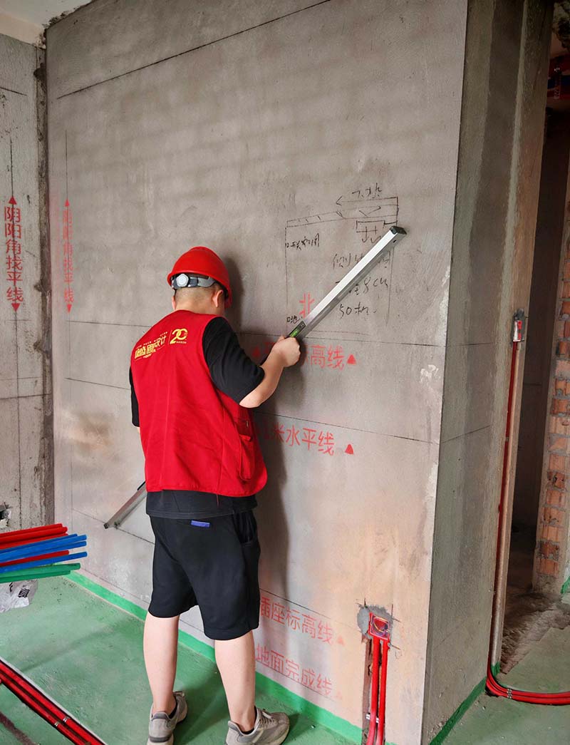 ▲檢查墻面平整度