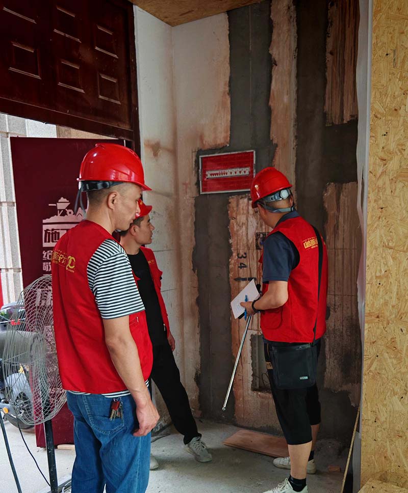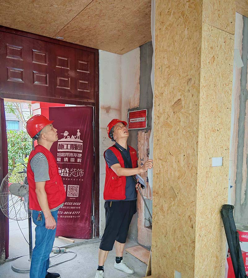 ▲檢查墻面木基層防潮處理