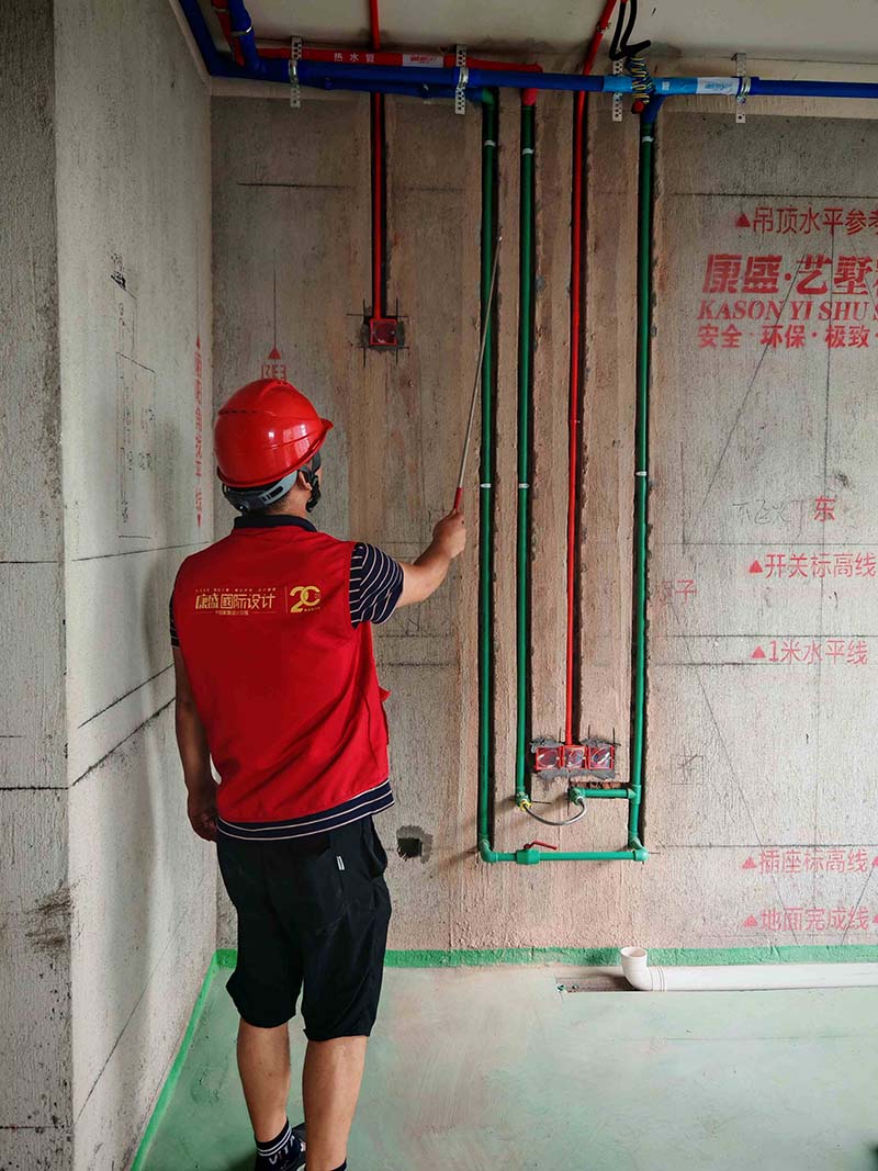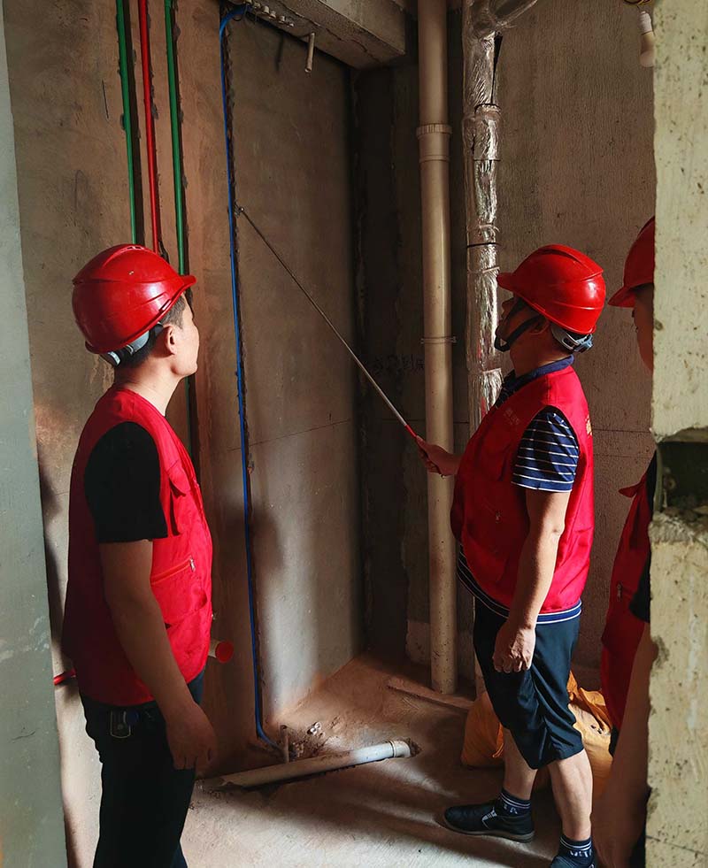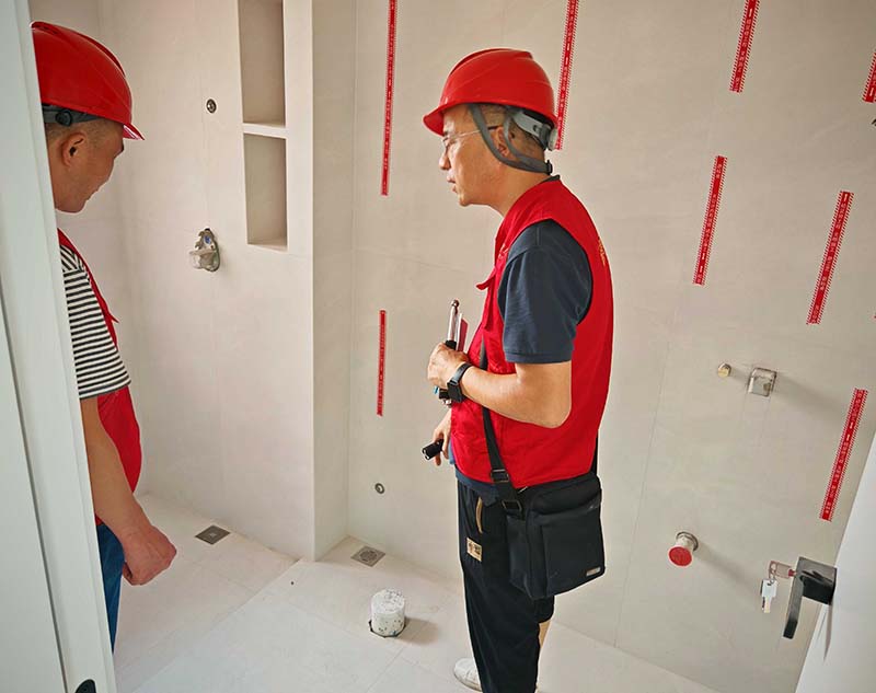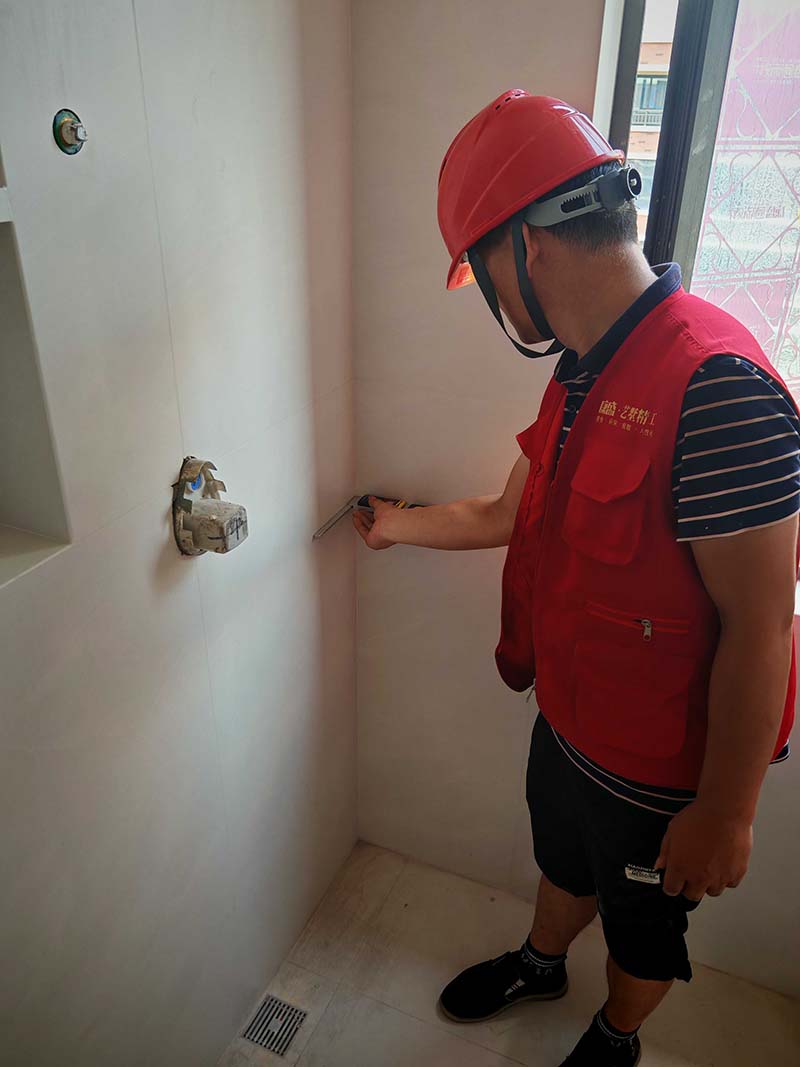 ▲檢查衛(wèi)浴預埋件垂直