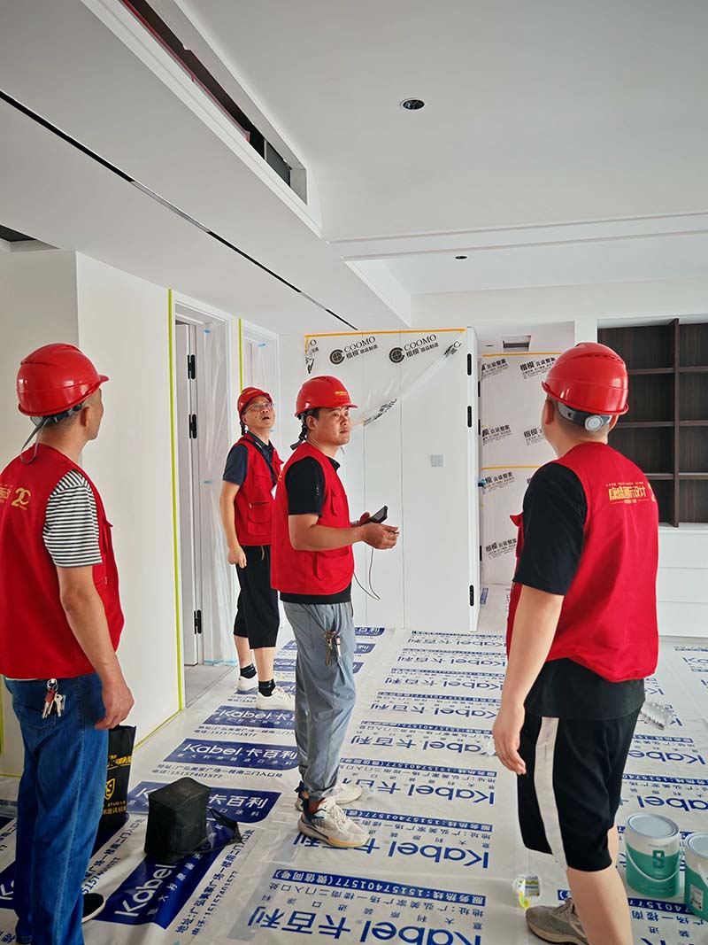 ▲檢查墻頂面油漆處理細節(jié)