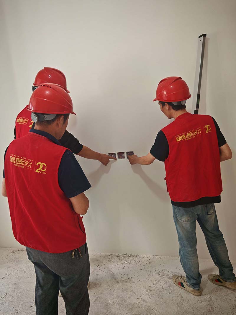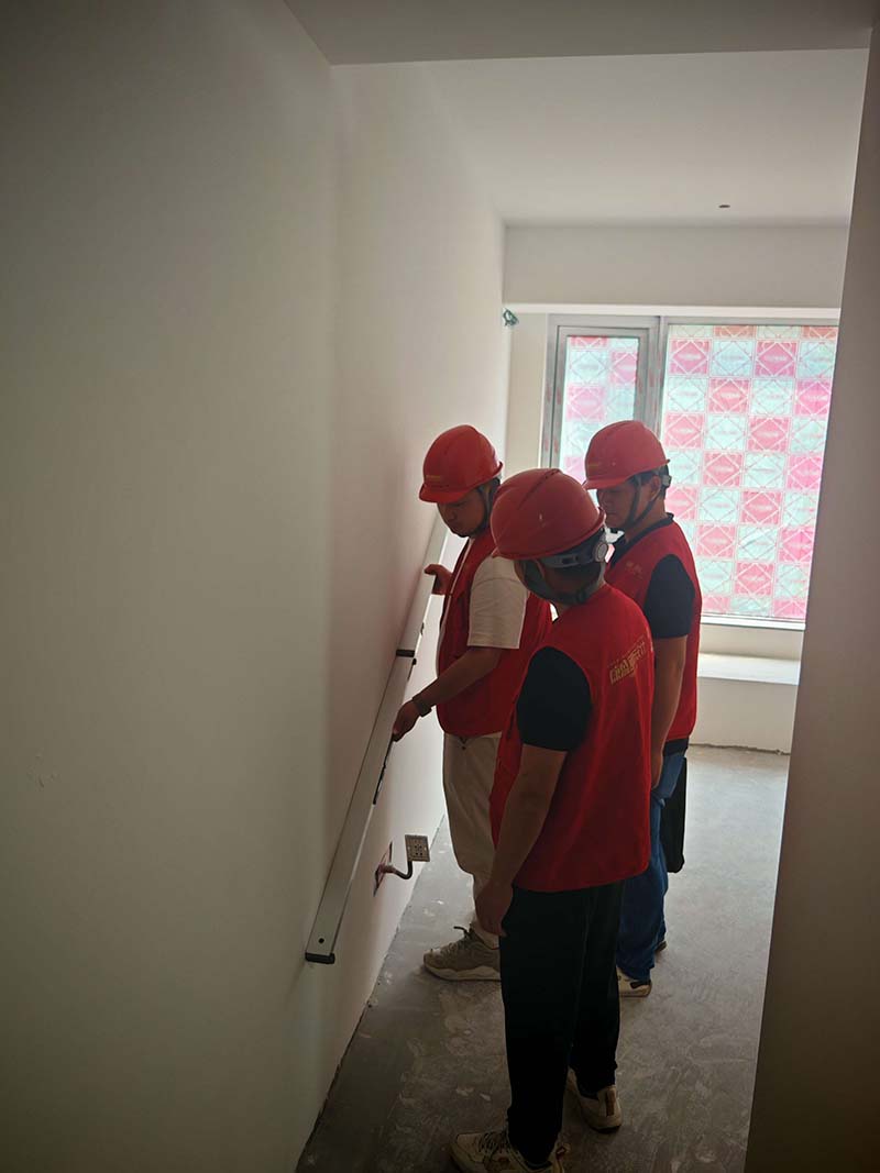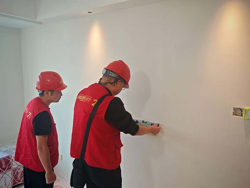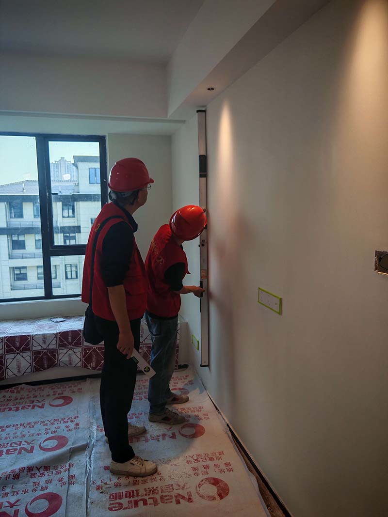 ▲檢查墻面平整度