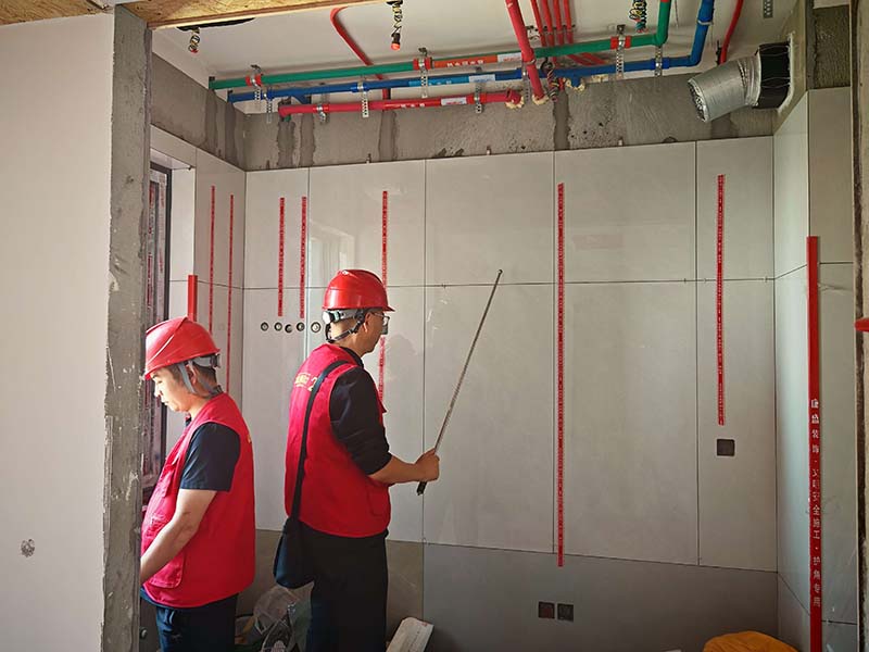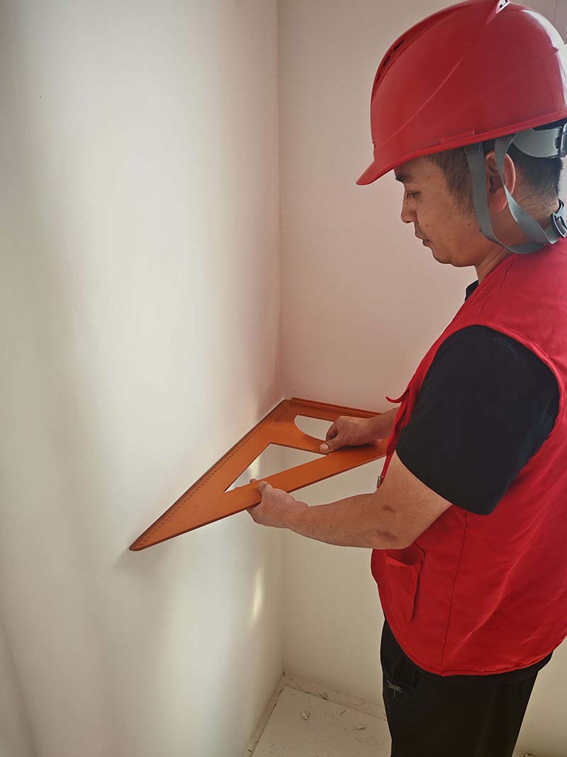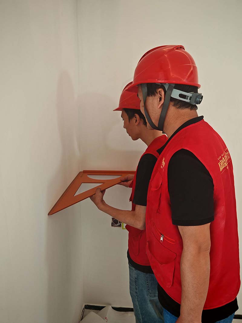 ▲檢查墻面垂直度