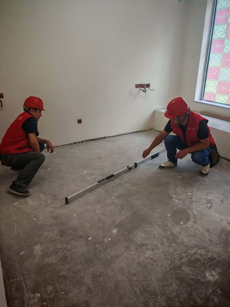 ▲檢查地暖找平面平整度