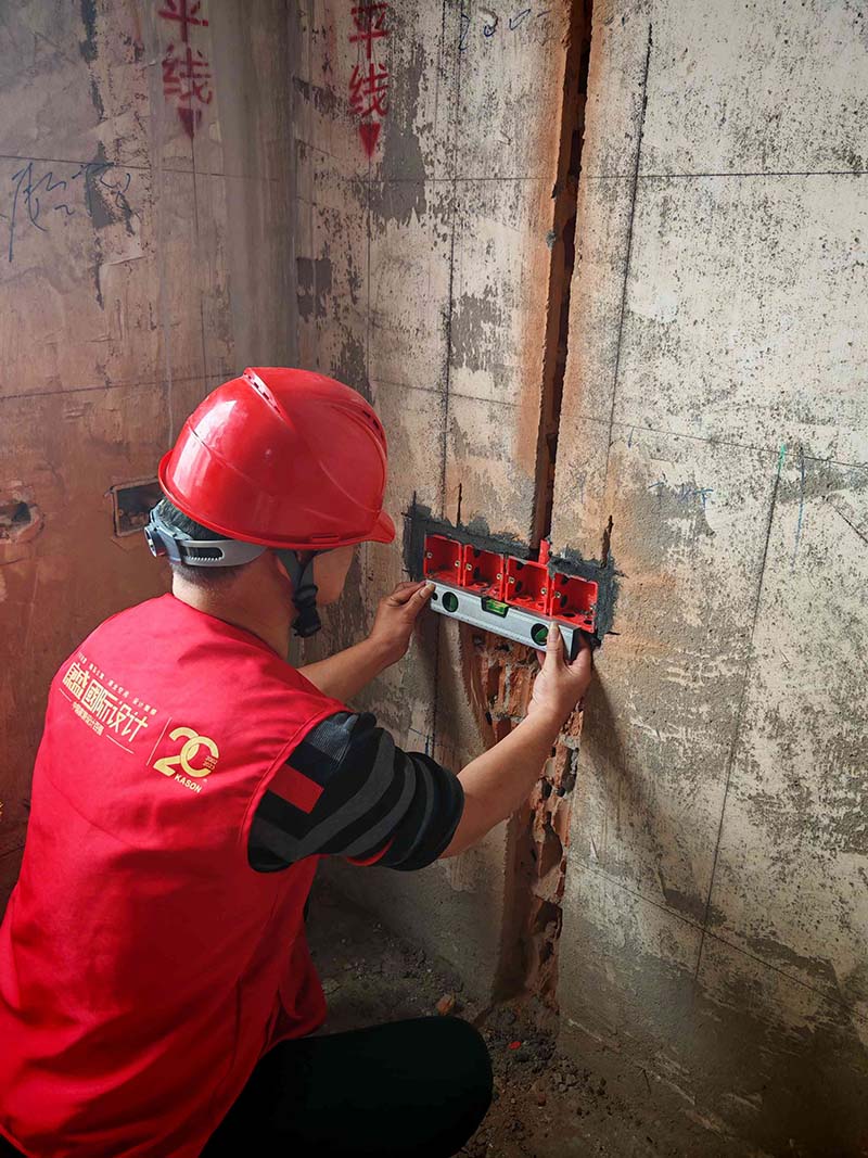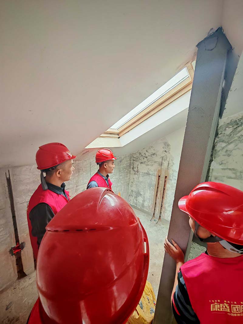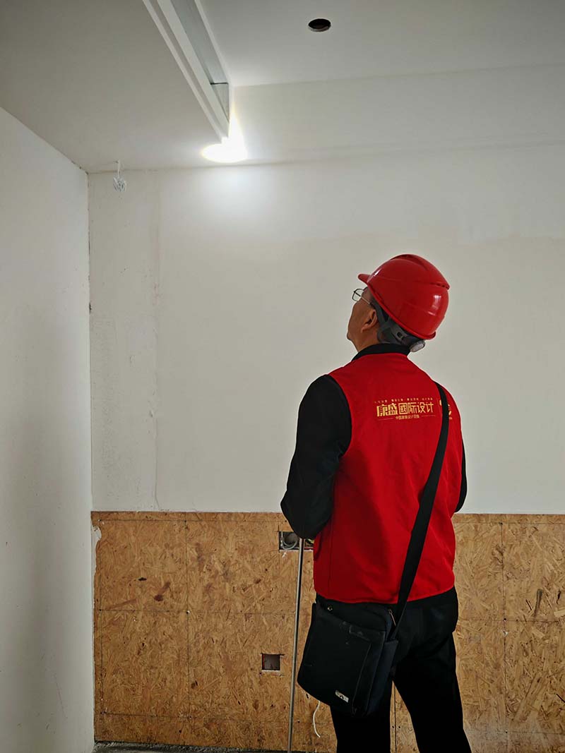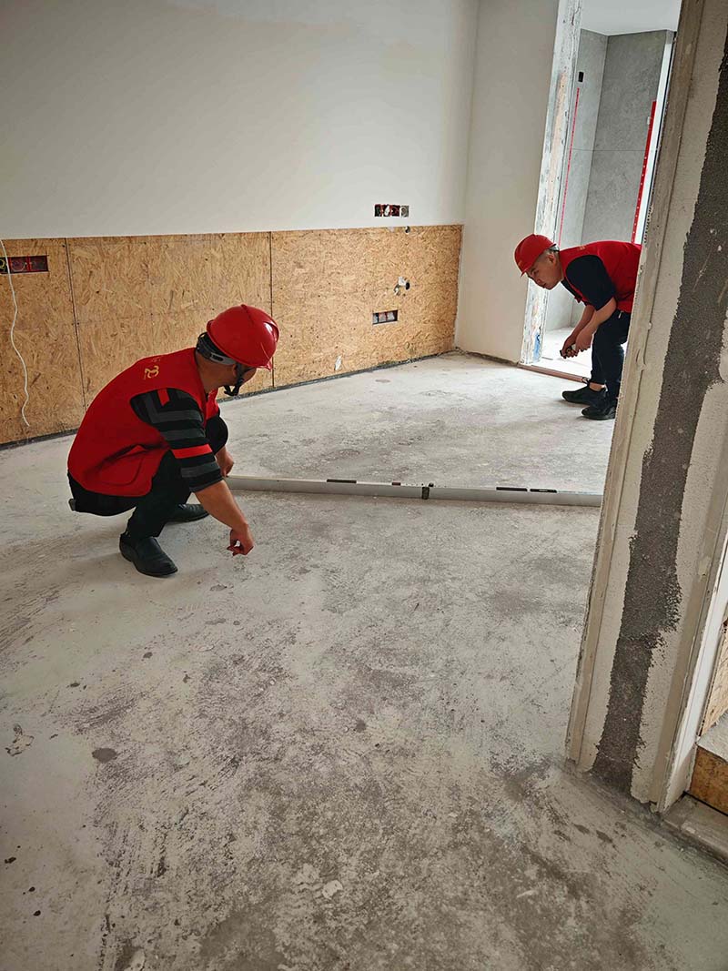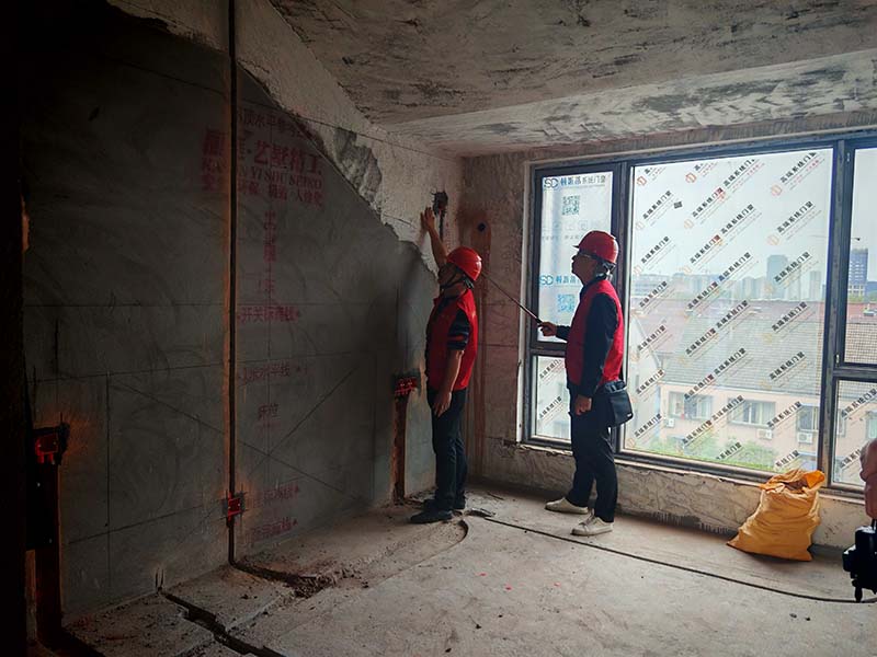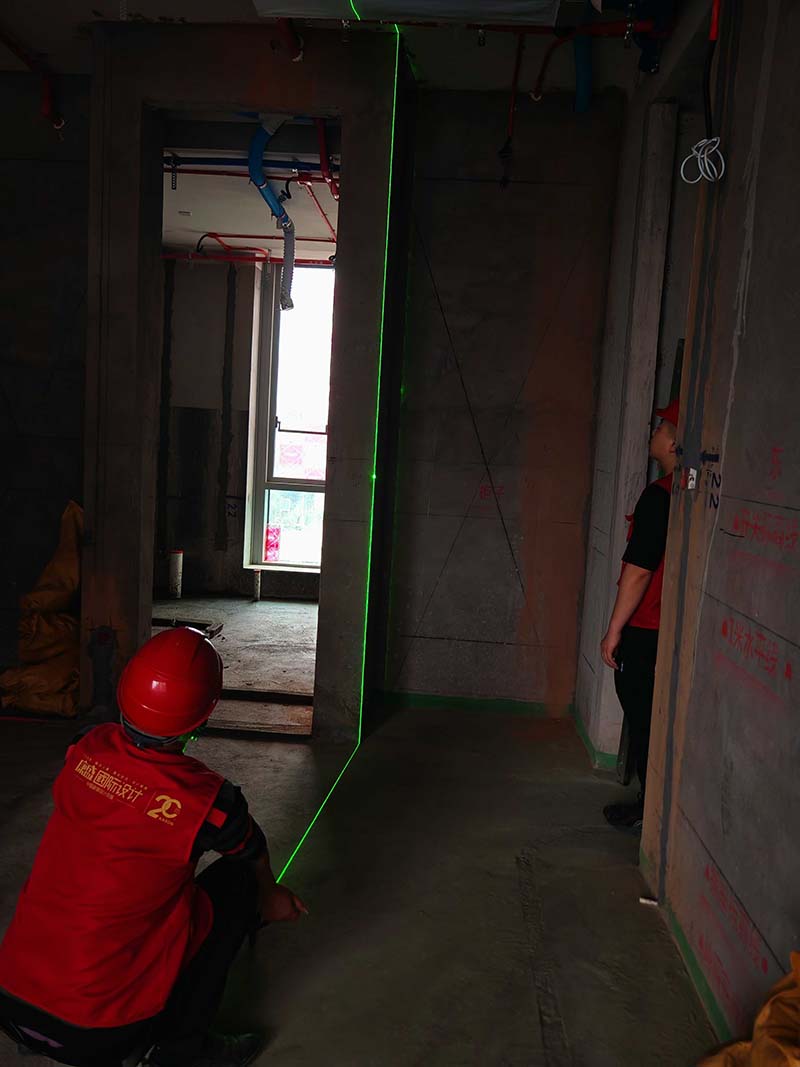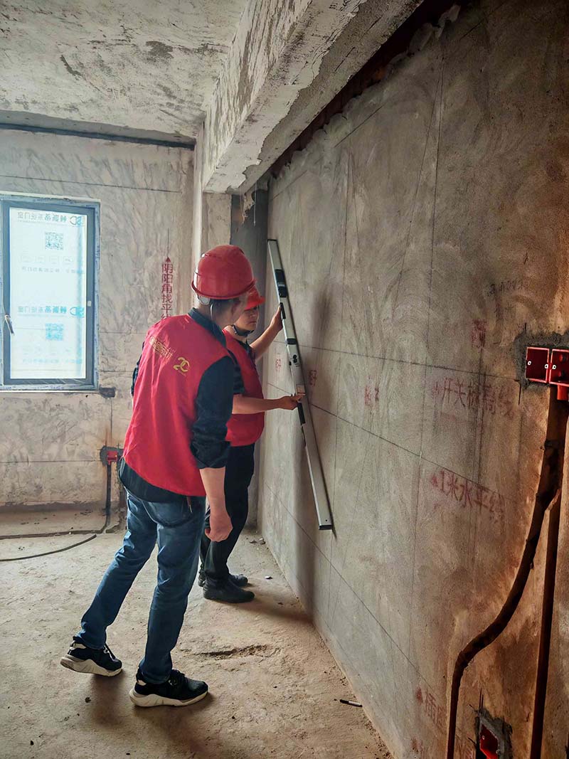 ▲墻面油漆基礎(chǔ)垂直度檢查