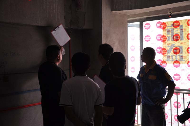 2017年6月9日上午8時(shí),嘉興康盛裝飾魔鬼檢查團(tuán)第四次出發(fā)。本次的檢查官由周春建、戴建榮、曹義周、姚志鋼、吳慶梁、孫雨、俞忠海、梅勝斌組成。抽取香榭水岸、云間綠大地、萬科香墅、寶石公館4處小區(qū)各一處工地進(jìn)行突擊檢查。