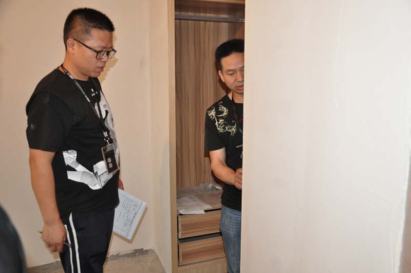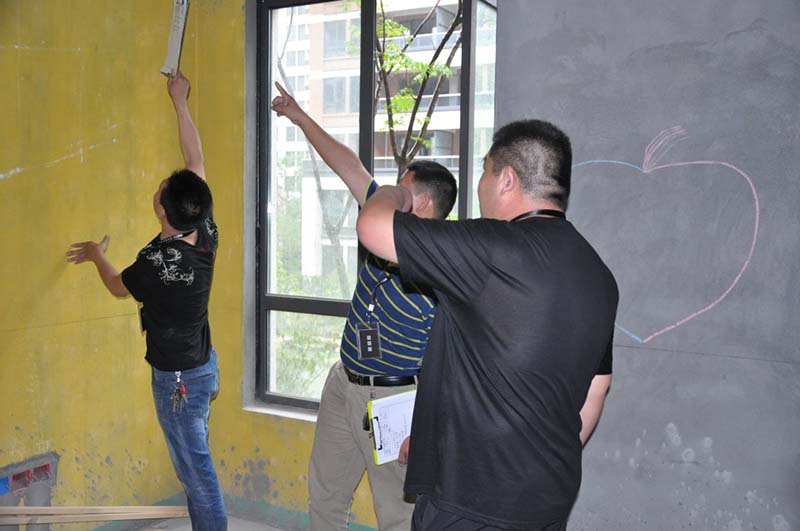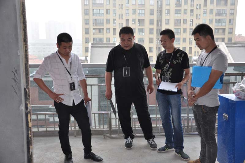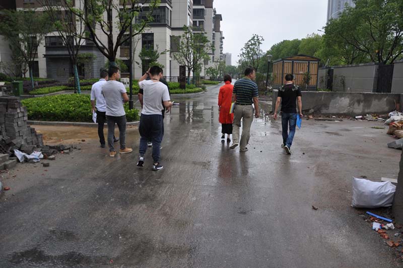 2017年6月19日,嘉興康盛裝飾魔鬼檢查團冒雨出擊,檢查官分別為孫雨、王金晶、吳慶梁、戴建榮、邱忠海、質(zhì)檢專員王加華,隨機抽取南德大院共3處工地進行突擊。