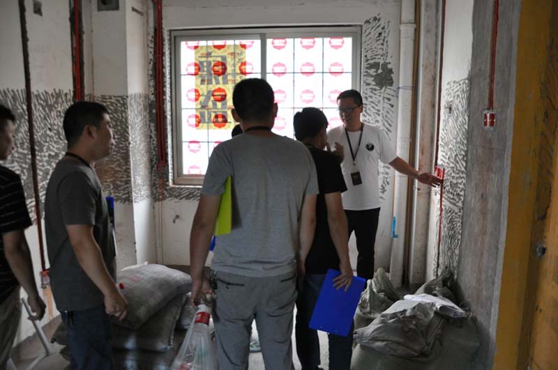 令人想不到的是,康橋花園所在的公寓工地,面積雖小,反而暴露了一個(gè)嚴(yán)重的問題,——業(yè)主叫了一家訂做鋁合金門窗的公司,由于其施工不嚴(yán)謹(jǐn),將在未來造成嚴(yán)重漏水,影響最終裝修質(zhì)量。工程總監(jiān)盧建鋒當(dāng)場拍照取樣,發(fā)給客戶,采取溝通解決措施。考慮到業(yè)主訂做門窗的合理性,嘉興康盛裝飾也會在今后施工中提前做出規(guī)劃。
