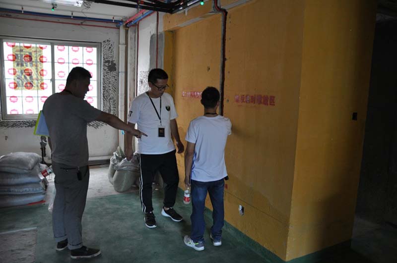 2017年6月27日下午,嘉興康盛裝飾魔鬼檢查團(tuán)冒雨出擊,檢查官分別為吳由龍、周春建、曹義周、俞忠海、阮艾龍、郭逢剛,隨機(jī)抽取英倫都市、康橋花園兩個(gè)小區(qū)共3處工地進(jìn)行突擊。