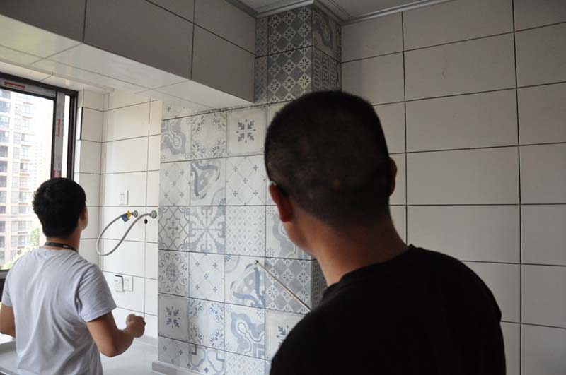 在本次檢查過程中,各項(xiàng)目經(jīng)理著重討論了泥瓦工藝,尤其是貼磚方面的注意事項(xiàng)。優(yōu)秀的泥工師傅,不僅根據(jù)實(shí)際情況,對(duì)瓷磚進(jìn)行浸水處理,更會(huì)自覺對(duì)瓷磚毛邊細(xì)致打磨,使其光滑圓潤(rùn),于細(xì)節(jié)處做到極致,而這也是嘉興康盛裝飾的嚴(yán)苛標(biāo)準(zhǔn)之一。