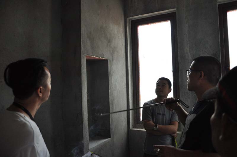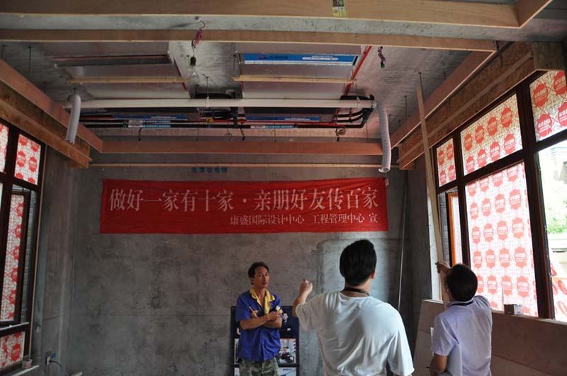 ▲與木工師傅吊頂前期核對(duì)工藝