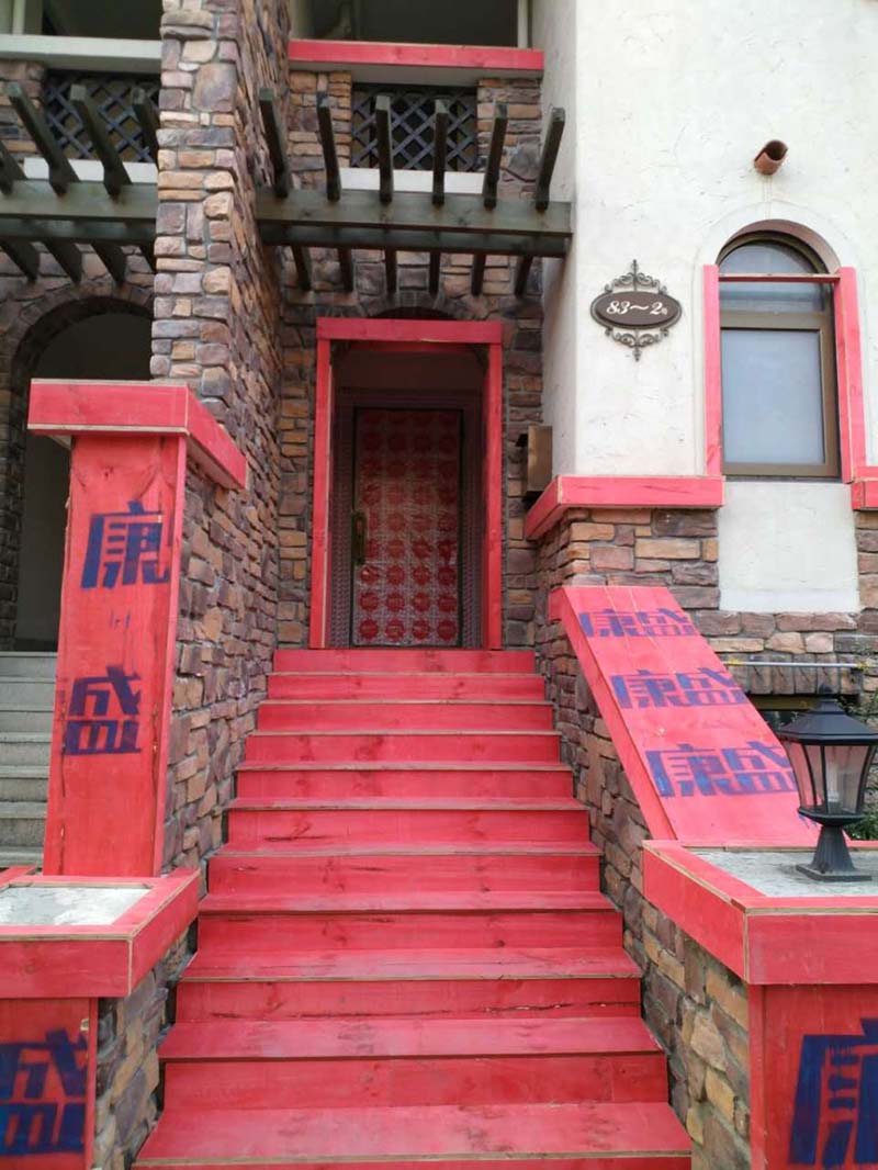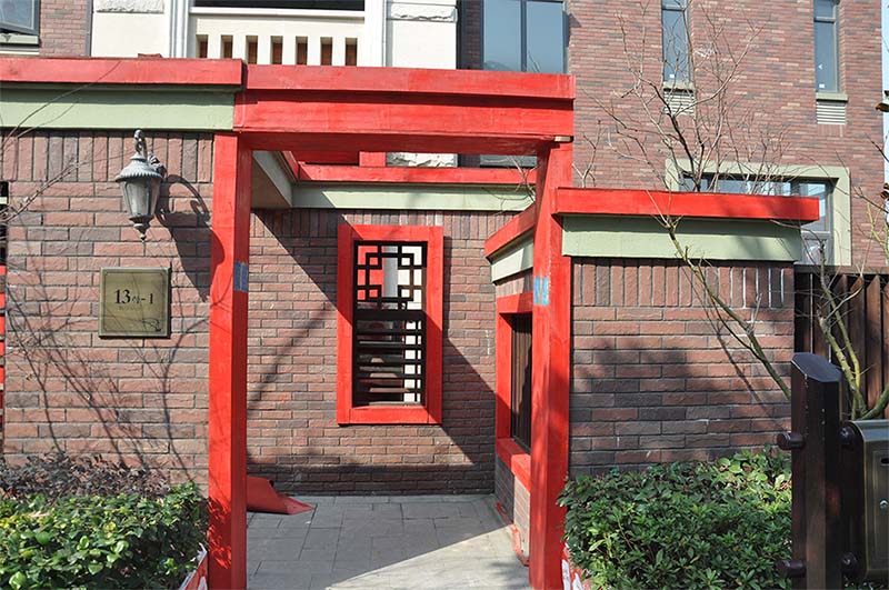「康盛紅」是門柱上的包板,將施工搬運(yùn)過(guò)程中的磕碰損壞降到最低。