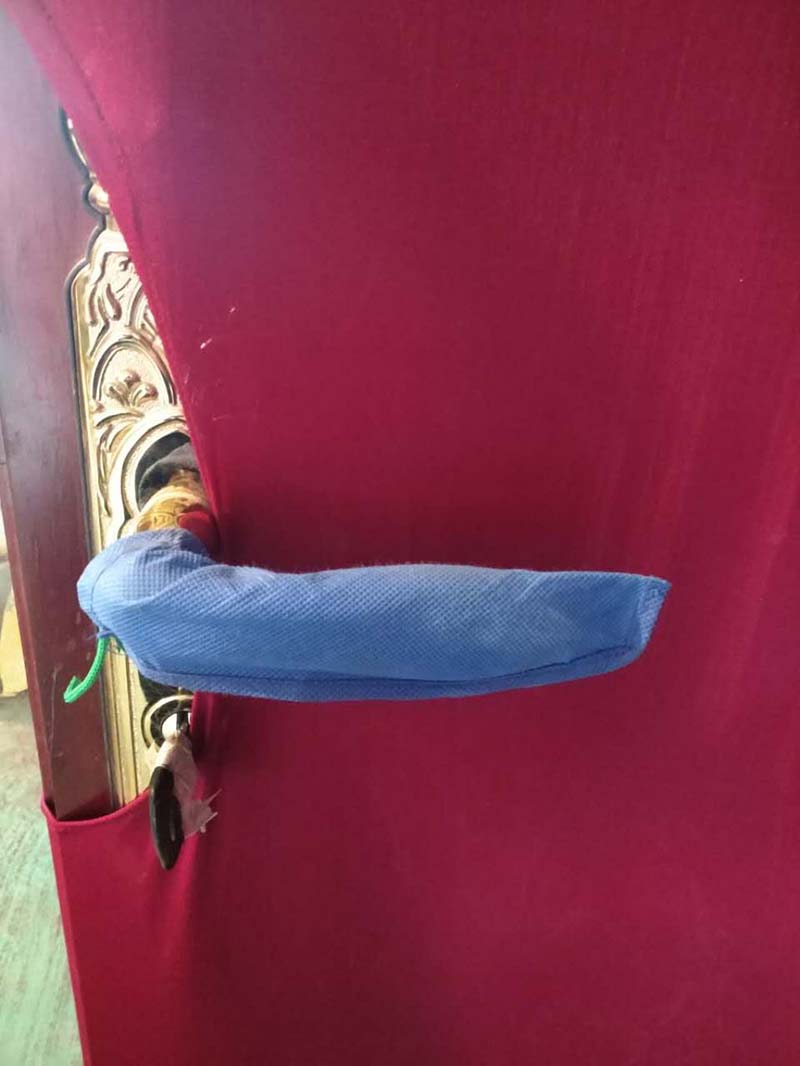 「康盛紅」是門上的柔軟包布,呵護(hù)其光澤亮度,而把手上的「小手套」,讓保護(hù)更完善、貼心。