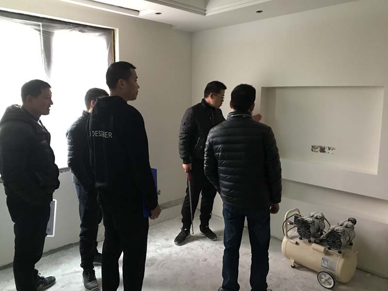 值得一提的是,本次巡檢的工地皆為別墅項目,幾戶業(yè)主都提出了更多改建的要求,特別涉及承重、防水、下水等幾大重點問題。如在上下樓板間打孔安裝下水管,工程總監(jiān)盧建鋒特別強(qiáng)調(diào)一個孔只能安裝一根下水管。2根及以上的管道共用一個孔位,特別容易發(fā)生滲漏,且后期維修復(fù)發(fā)性大,必須從源頭杜絕問題產(chǎn)生。