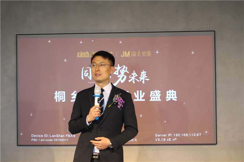 最后發(fā)言的是康盛裝飾總經(jīng)理蔣軍華先生,作為康盛的創(chuàng)始人,蔣總表達(dá)了對在座所有朋友到來的歡迎和感謝,同時也表示桐鄉(xiāng)康盛是第一家分公司,依舊會不忘初心、不斷進(jìn)取,延續(xù)康盛在嘉興高端家裝第一品牌的榮譽(yù)。