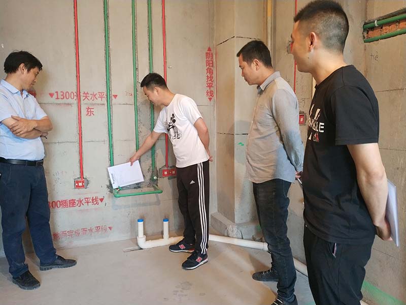 本次檢查的幾處在建工地,別墅與大平層都具備。由于每個(gè)工地的進(jìn)度有所不同,因此所需要工程經(jīng)理們檢查、督導(dǎo)的問(wèn)題也相應(yīng)的不同。每個(gè)施工現(xiàn)場(chǎng)檢查團(tuán)們都根據(jù)實(shí)際情況給予專業(yè)的建議與方式方法。本次主要巡查包括水電排水管工藝、貼磚工藝、燃?xì)馀艢夥植嫉仁┕み^(guò)程中多易被忽略的問(wèn)題。