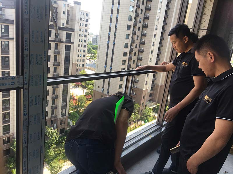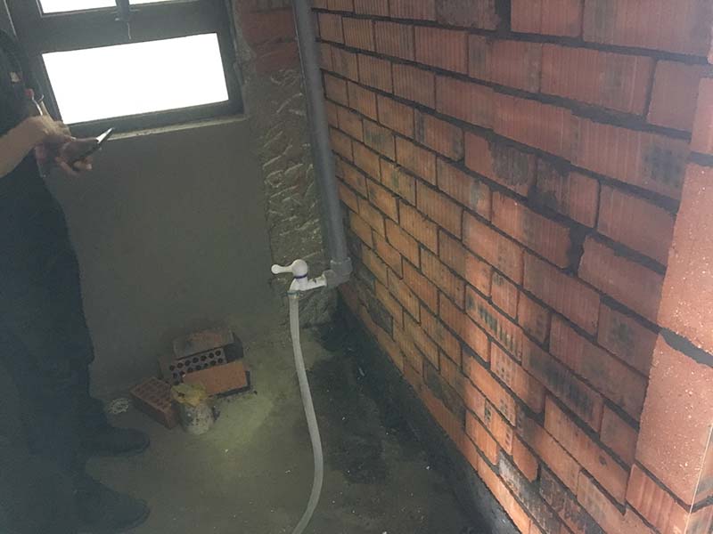 ▲檢查陽(yáng)臺(tái)貼大理石漏水問(wèn)題