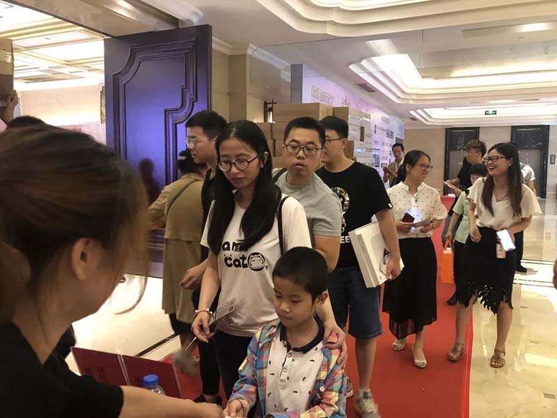 排隊簽到的預(yù)約客戶絡(luò)繹不絕,真是讓兩個簽到小姐姐忙到想哭。