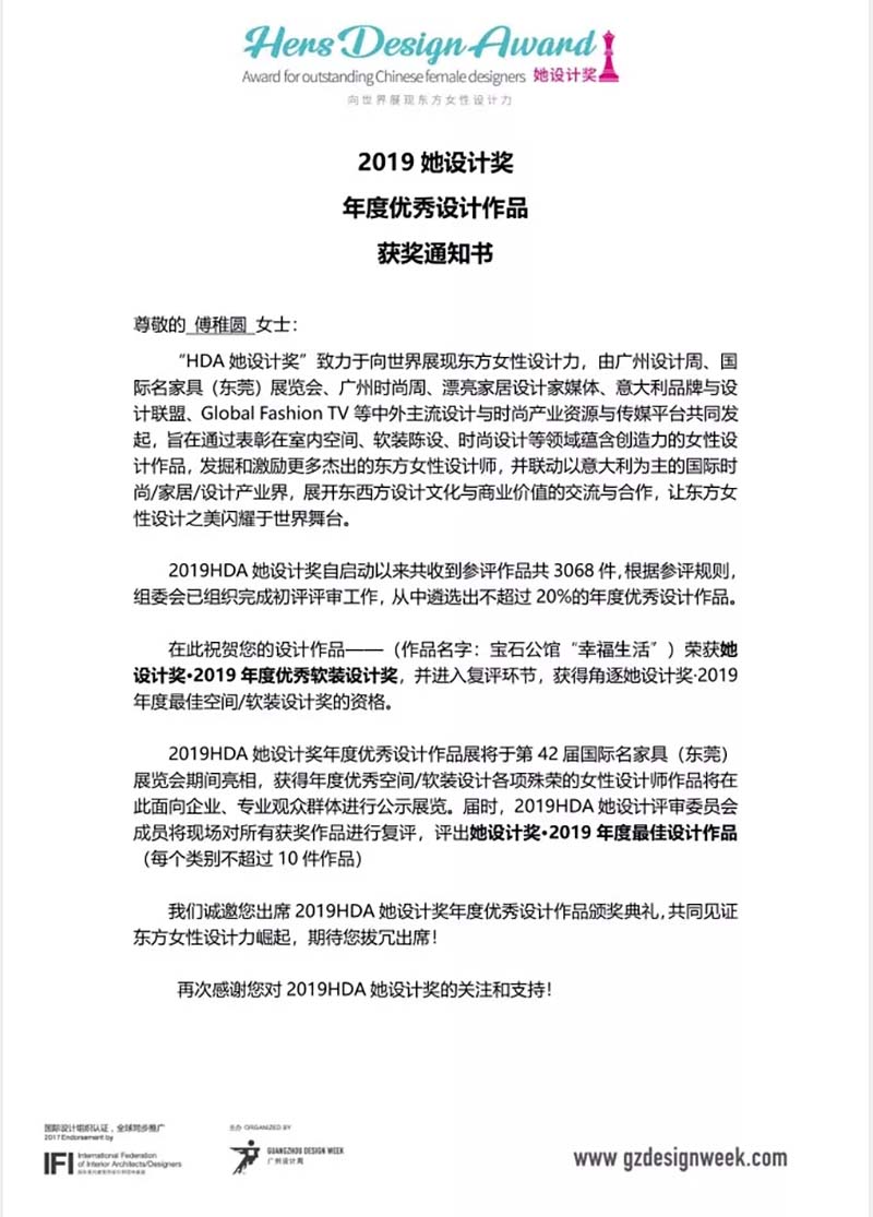 獲得她設(shè)計(jì)獎·2019年度優(yōu)秀軟裝設(shè)計(jì)