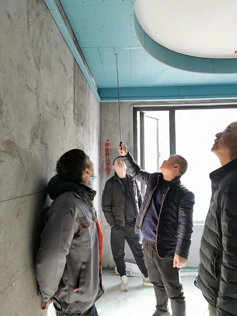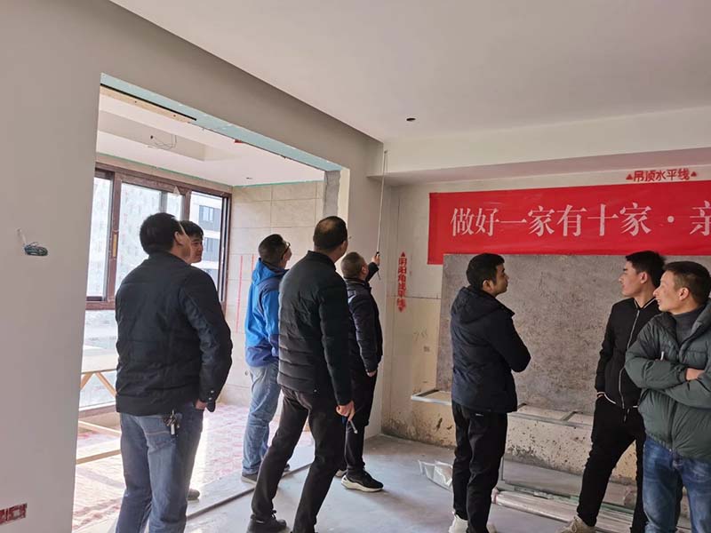 本次除了例行工地巡檢外,還在現(xiàn)場(chǎng)進(jìn)行了木工工班技術(shù)培訓(xùn)。裝修木工階段的工程量是比較大的,并且關(guān)系著整個(gè)房屋裝修的美感和實(shí)用性。