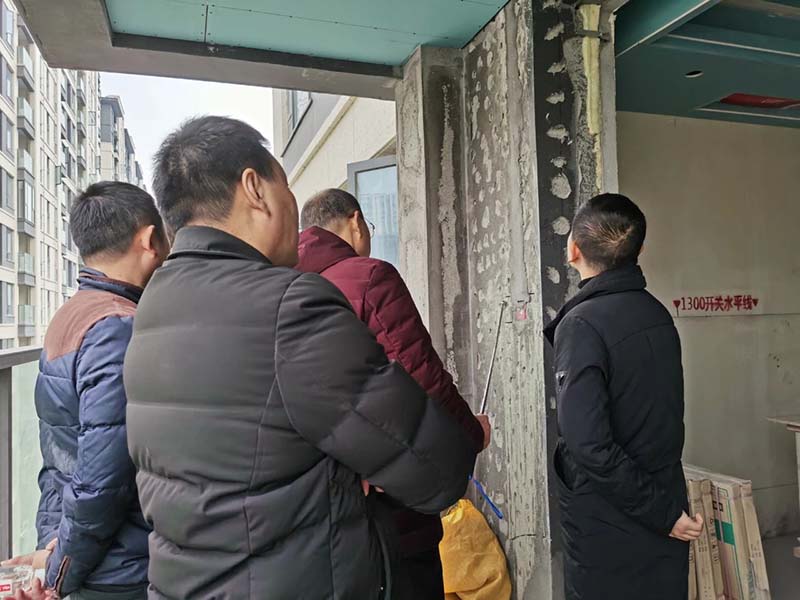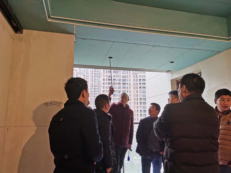 現(xiàn)場大家互相交流經(jīng)驗,探討施工工藝,努力為業(yè)主呈現(xiàn)最佳的技術(shù)水平,把夢想中的家,變成現(xiàn)實。