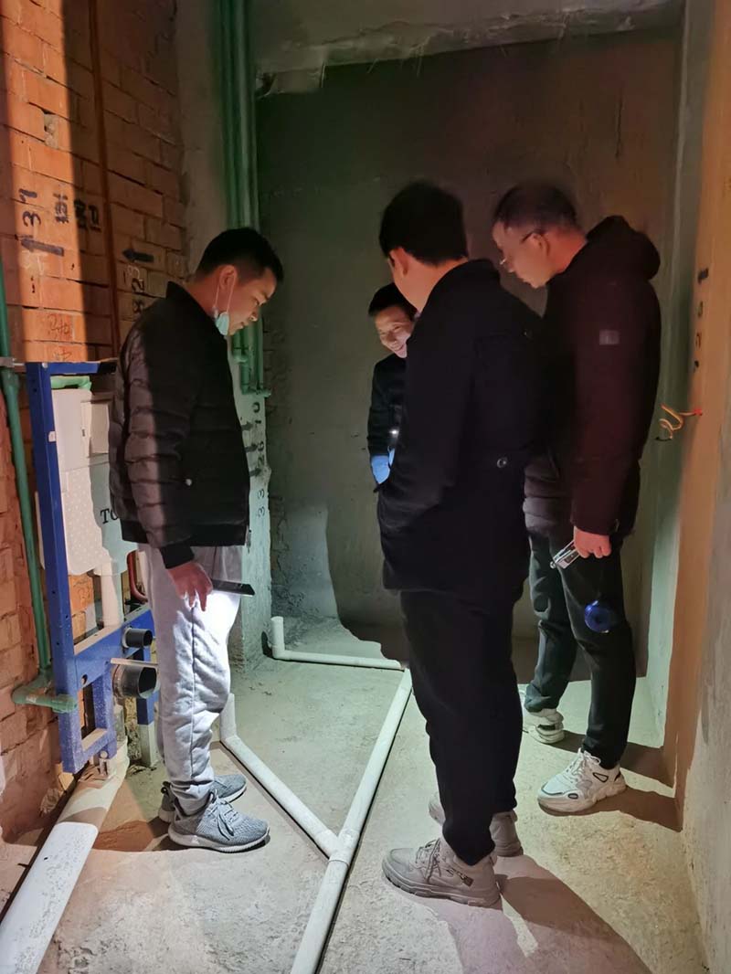 本次巡檢時,檢查團對進行到泥瓦工階段的工地進行了重點檢查,包括墻面貼磚、墻面泥工修補等等,對有問題的地方,立即提出來,要求項目經(jīng)理盡快整改。