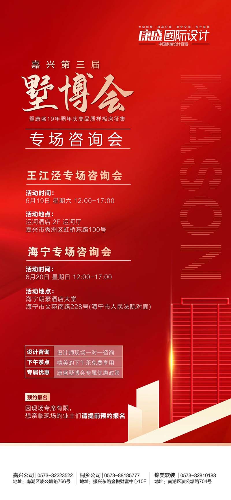 墅博會 丨 康盛家裝咨詢會周末與你相約王江涇和海寧