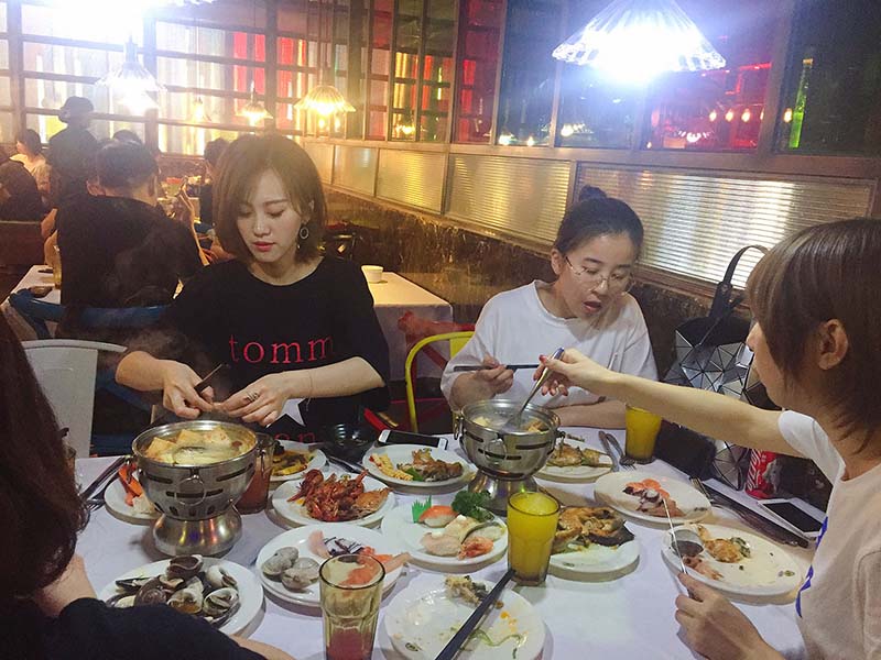 美女們都不顧形象了,哪里還記得保持身材和吃相。