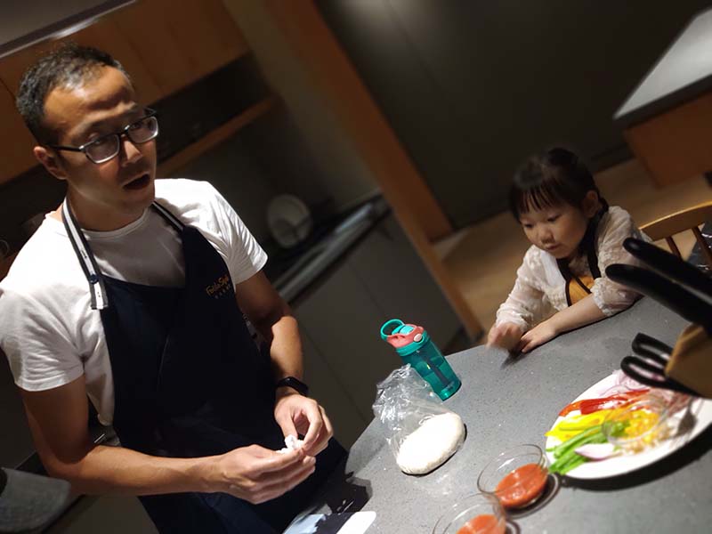 我們今天的小家長可是很挑剔的:這個披薩我們還要吃得哦,你小心點!