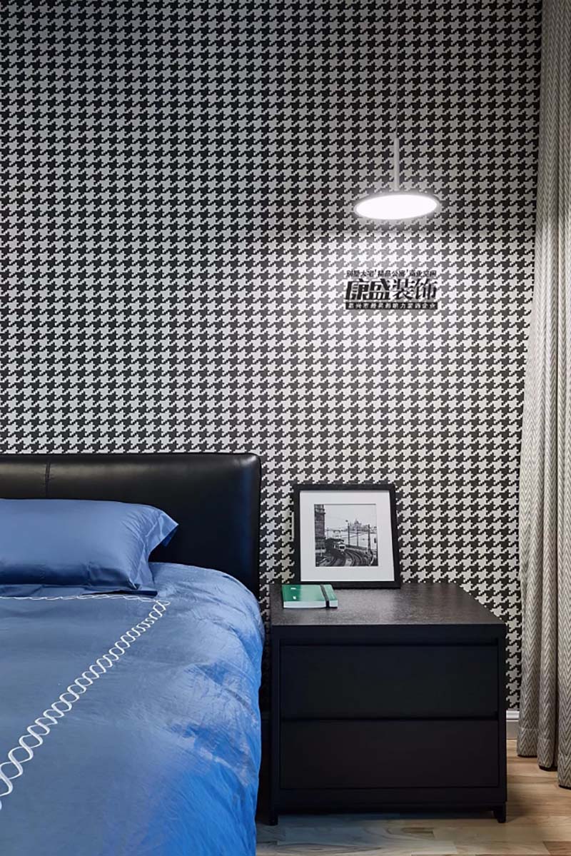 臥室的壁紙千鳥格,時尚不通俗,帶來不一樣的視覺體驗。